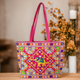 These tote bag with an elephant print is a colorful and vibrant bag that showcases a traditional design from the region of Rajasthan, India. The bag features a picture of an elephant, a revered animal in Indian culture, printed on it with small mirror works and embroidery. The design is intricate and captures the essence of Rajasthani art and craftsmanship.
